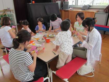 お母さんと一緒に七夕の飾りをつくって,とても嬉しそうな子どもたちでした。お忙しい中,参加していただきありがとうございました。