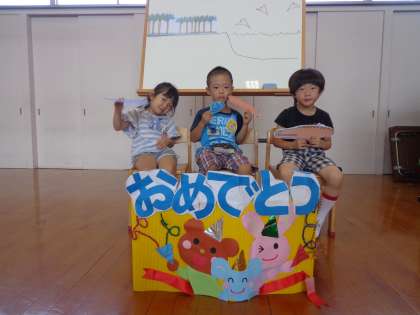今日は,8月の誕生会でした。みんなに誕生日を祝ってもらって,3人の子どもたちはとっても嬉しそうでした。誕生日おめでとう。