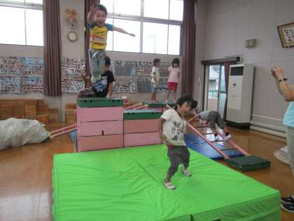 今日は午後から,遊戯室でいっぱい体を動かして遊びました。