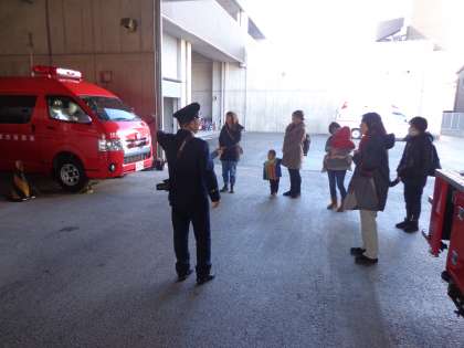 12月16日(金),うさぎ組さんは親子で伏見消防署の見学をしました。今日は風がとっても冷たくて,4組のうさぎさん親子の参加になりました。