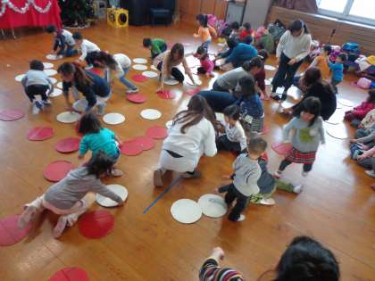 音楽会の後は,子どもたち対大人で,大型オセロゲームをしました。子どもたちは勝って,大喜びでした。