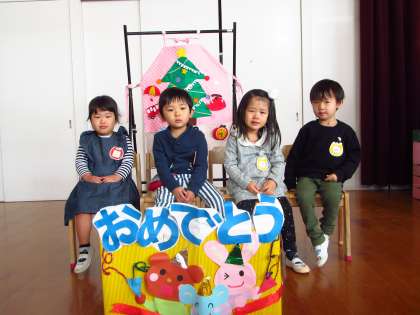 12月誕生会(12月19日) 公開日 2016/12/21 更新日 2016/12/21 幼稚園では・・・ 12月の誕生会がありました。12月は,4名の友達が誕生日でした。みんなで歌をうたったり,先生のエプロンシアターのお話を聞いたりして,お祝いしました。楽しかったね!誕生日おめでとう。