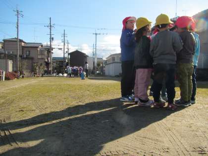 すみれ組 その1 〜リレーをしたよ〜 公開日 2017/02/02 更新日 2017/02/02 幼稚園では・・・ マラソンをした後に,子どもたちからのリクエストでリレーをしました。リレーでは必ず作戦会議をしますが,みんなで一緒に勝ちたいなという気持ちで参加していることがわかりました。また,待っている子どもも走り終わった子どももみんなで,仲間の走る姿を見ながら精一杯応援する姿も,みんなの気持ちがひとつになっているなと見ていて感じました。