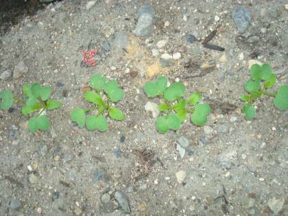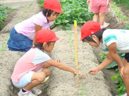 先週種を蒔いた大根がみんな土の中から芽を出しました。毎日朝9時にてんとうむし広場に出かけて水をやったり,様子を見たりしていました。子どもたちの思いを感じてかわいい芽が出揃いました。
