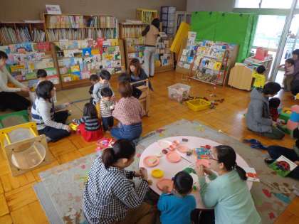 【3月1日】ひなあられをいただきましょう 公開日 2017/03/03 更新日 2017/03/03 めだか・うさぎ組 3月1日(水),今日はたくさんのめだか組,うさぎ組の子どももたちが遊びに来てくれました。絵本室で,動くおもちゃや積み木など,自分の好きな遊びを楽しみました。 お家の方も多かったので,保護者の方同士のお話も弾んでいました。 遊んだ後は,園児より少し早いけど,ひなあられを食べました。藪先生から一人一人にひなあられを配っていただき,おいしそうに食べていました。
