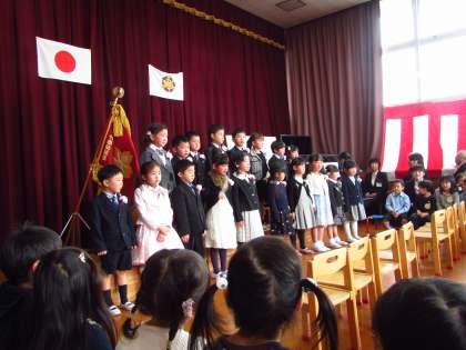 今日,5歳児すみれ組の19名の子どもたちが,竹田幼稚園を巣立っていきました。ご来賓やご家族の皆様と,仲良く過ごした3.4歳児に見守られて,晴れやかに堂々とそして時には涙しながら,一人ずつ修了証書を受け取り,お別れの言葉や歌に思いを込めて幼稚園の最後の日を締めくくりました。修了児のみなさん,おめでとうございます。また,会いに来てくださいね。