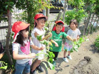 たんぽぽ組とすみれ組でてんとうむしひろばの畑に
