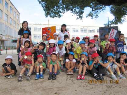 雨で延期になった運動会でしたが,今日はお天気に恵まれ運動会ができました。「今日は運動会やな」と子どもたちも元気に登園してきました。