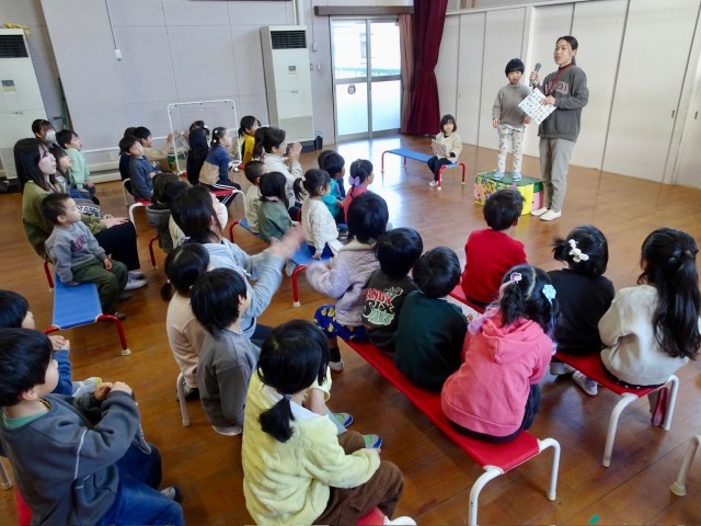 お誕生児さんは、ちょっぴり恥ずかしそうにしながらも、名前を呼ばれると元気に前に出てきてくれました。「おめでとう!」の言葉と大きな拍手に包まれ、温かい時間となりました。これからも元気いっぱい、笑顔あふれる毎日を過ごしていきましょうね。
