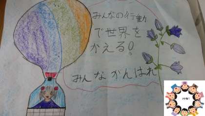 大好きな虫と電車を書きました。いつか電車に乗って遊びに行きたいです。お姉ちゃんも花言葉が「感謝」というカンパミュラの花を添えてメッセージを書きました。