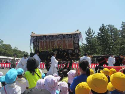京都市立幼稚園15園の5歳児で、「葵祭 路頭の儀」を御所まで見学に行きました。4年ぶりの開催ということですが、例年、京都市教育委員会のお世話になり、観覧場所を用意していただいています。とてもいいお天気で行列の最初から最後まで間近で見ることができ、いい一日となりました。始まる前には、牛車のところで写真を撮らせていただくこともできました。