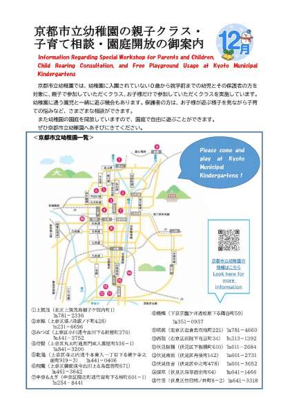 市立幼稚園親子クラス・子育て相談・園庭開放のご案内12月号1