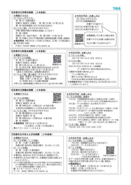 京都市立幼稚園の親子クラス・子育て相談・園庭開放の御案内です。