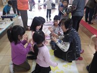 また,地域のおじいさん,おばあさんが幼稚園に遊びに来てくださる地域の方との交流会も楽しみな行事の一つです。その日は,コマ名人やあやとり名人のおじいさん,おばあさんにいろんな技を教えてもらいます。