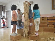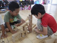 通常の保育を終えた後,事前申込みで預かり保育に参加した子どもたちは,普段とは違うおもちゃで遊んだり,おやつを食べたりして過ごします。預かり保育の時間は,いつもの担任と違った先生と触れ合ったり,異年齢の子どもたち同士でかかわったりする機会でもあります。