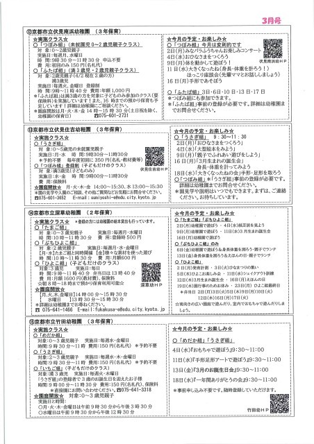 京都市立幼稚園では、幼稚園に入園されていない0歳から就学前までの幼児とその保護者の方を対象に、親子で参加していただくクラス、お子様だけで参加していただくクラスを実施しています。